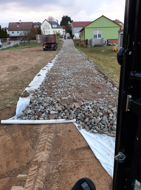 - Výkopové práce pro HTÚ (voda, kanalizace, plyn, el. kabel)