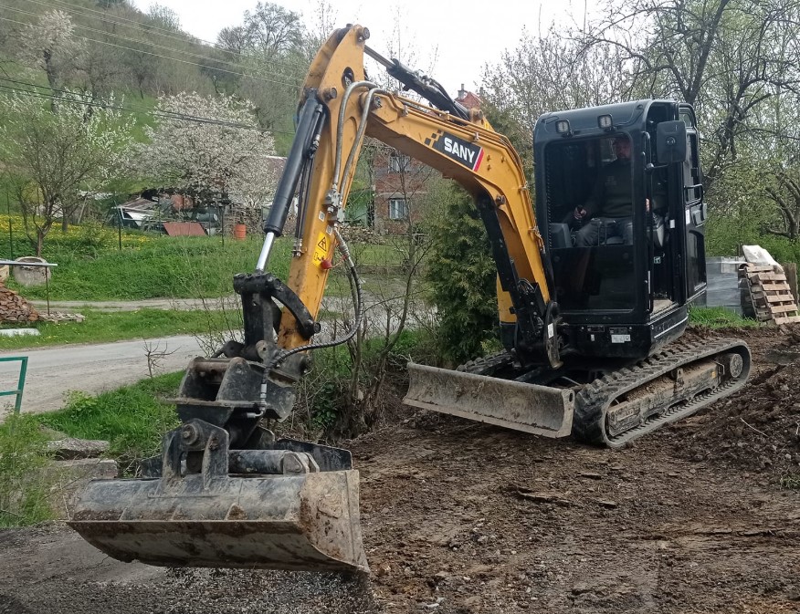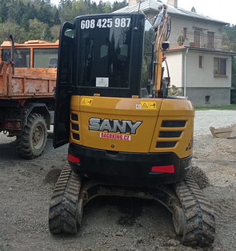 - Možnost půjčení bagru, přívěsných vozíků VEZEKO a vibračního pěchu viz. níže.